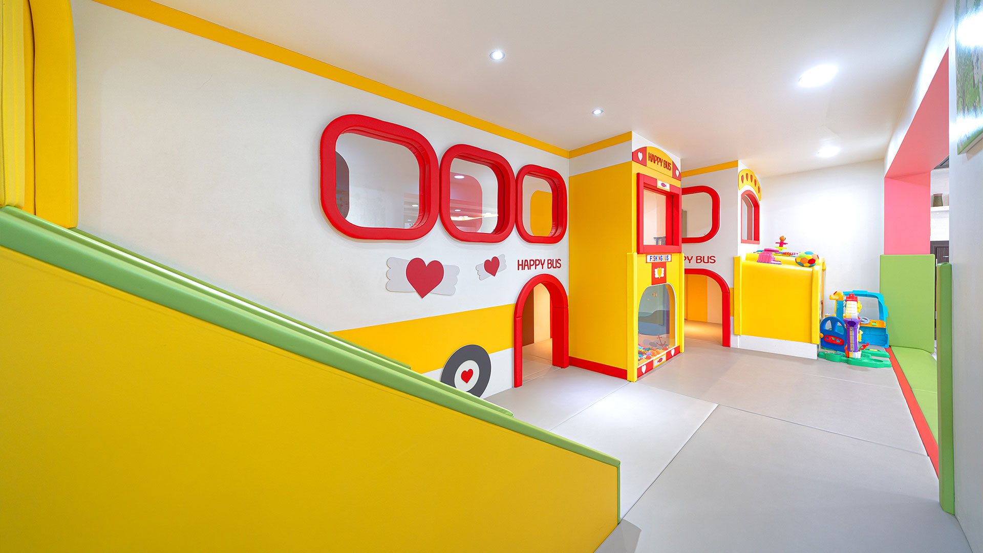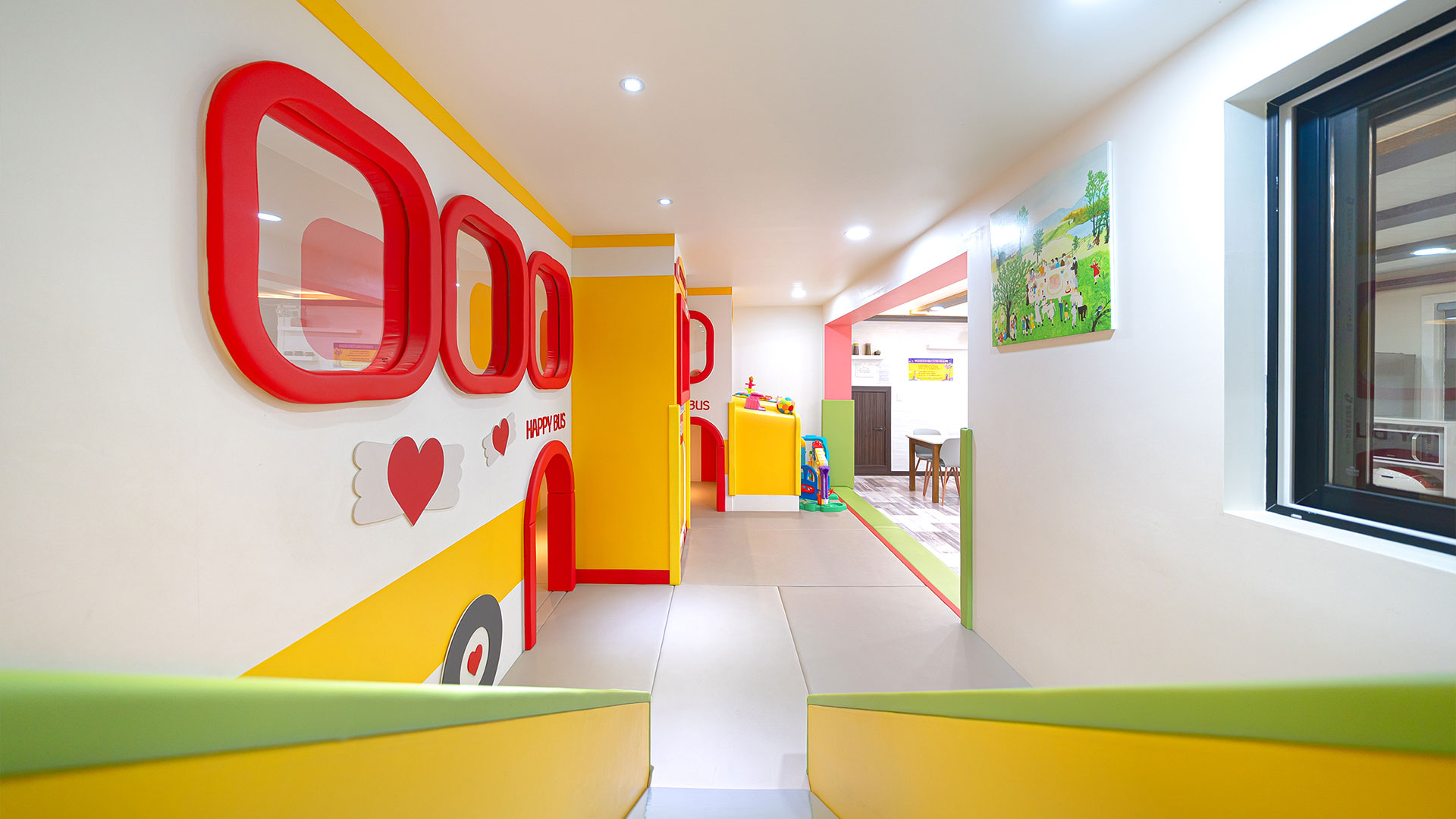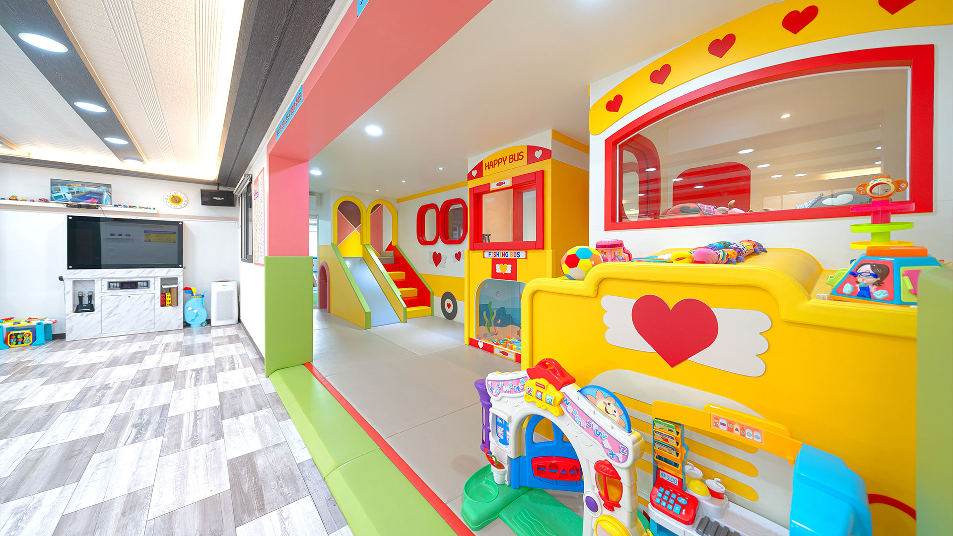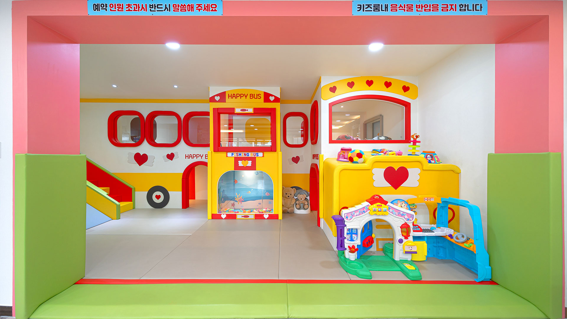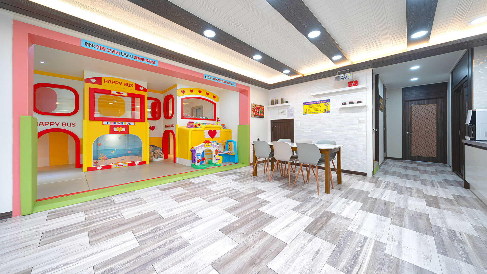 키즈카페 부럽지 않은 신나는 놀이 기구와 장난감이 구비되어 있습니다.